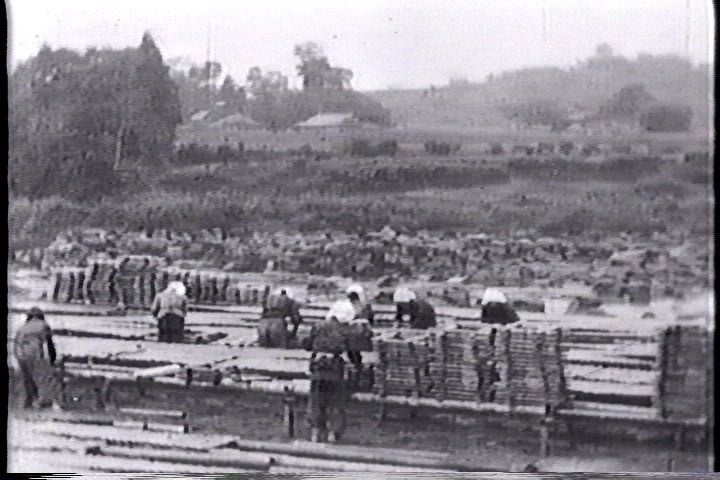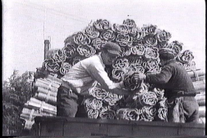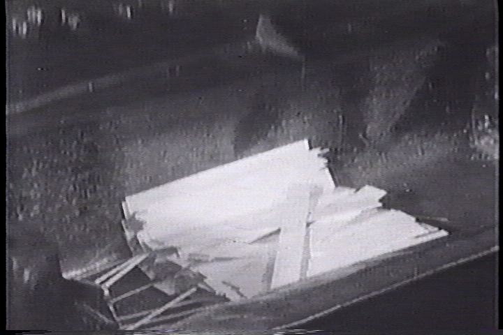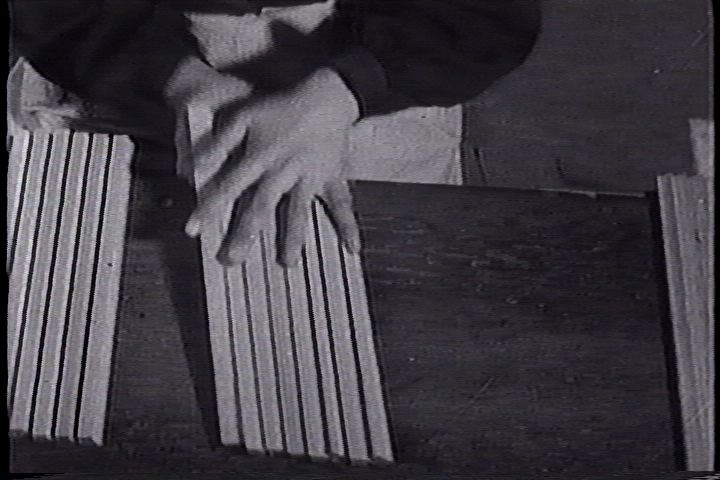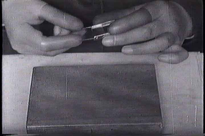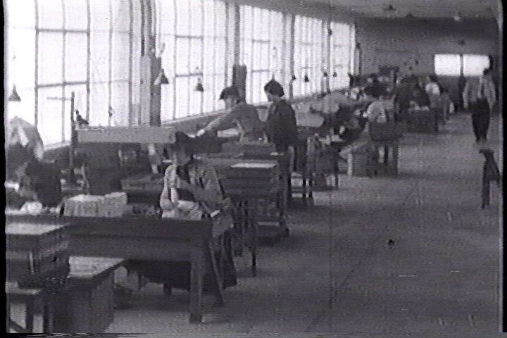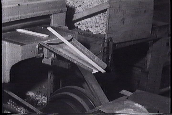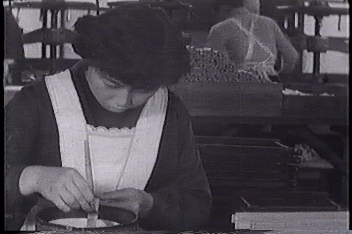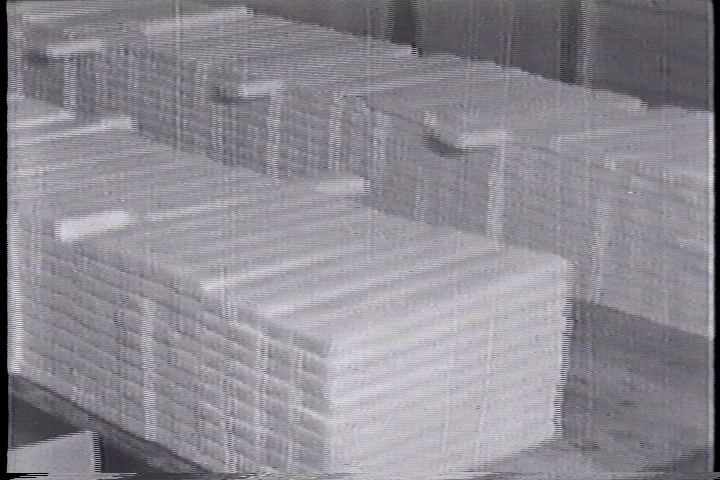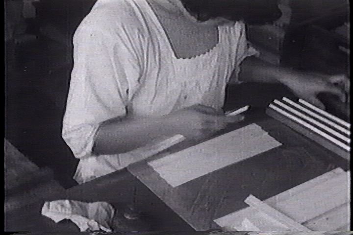 The following stills were generated from an 8mm film apparently taken by a Hemmi employee, showing various steps in the slide rule manufacturing process. They were taken from a VHS tape of the movie I received from Hemmi in the early 1990s, and, judging from some of the vehicles not seen in these stills, the original was probably created in the late 1950s.
